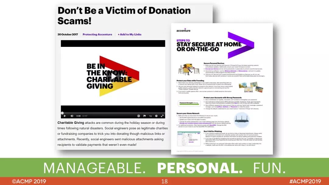 《Less Filling: Five Steps to a Successful Security Behavior Change Program that Doesn’t Taste Anything Like “Training”》,埃森哲信息安全部门的专家分享了他们在推动员工进行信息安全的行为转变时,就使用了故事来传递这些转变对于员工的价值所在以激发员工的变革意愿、理清具体需要转变的行为以向员工展现新行为规范。