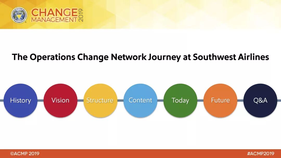 一连听到的三场分享都从不同角度讲述了故事在组织变革中的应用。《Not Your Mama’s Change Network: A Case Study in Engaging a Dispersed Workforce》,分享的是西南航空公司关于其变革网络的建设实践。故事就在其中起到了非常重要的作用。