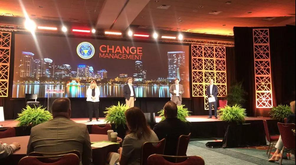 上午的第一场活动是全体成员参加的行业大论坛。ACMP成立至今已经十个年头,这次论坛旨在汇集全球从业者的经验和智慧,探讨变革管理行业未来十年的发展方向和趋势。论坛集中在三个问题: