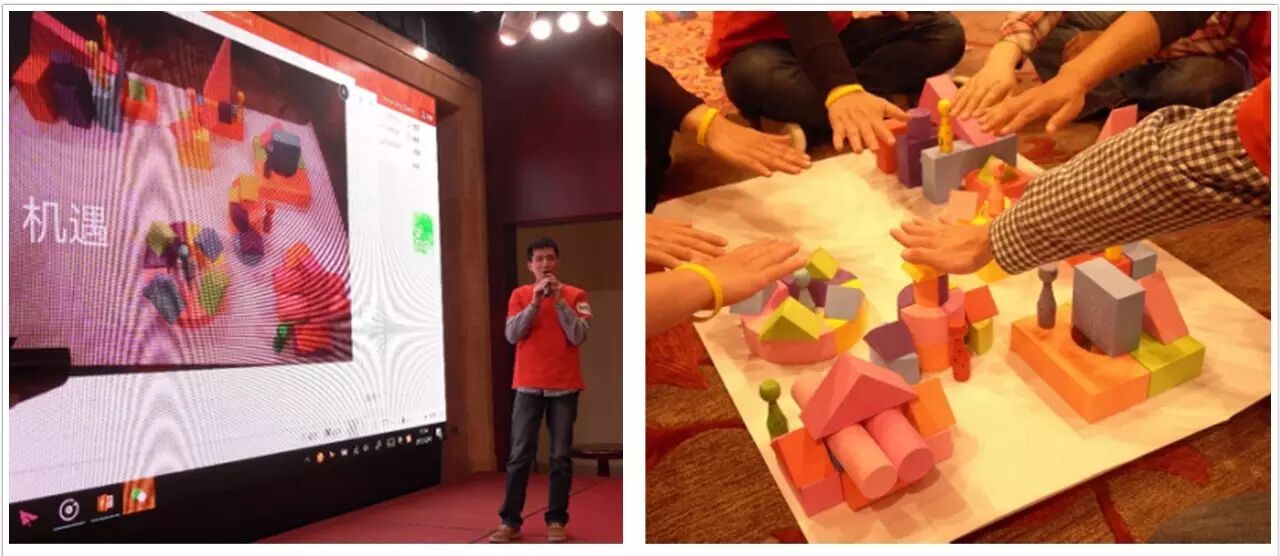分组完成后,每个小组通过搭建积木的形式来阐述对变革的理解,从底层搭建到顶层设计。变革老师进行点评。