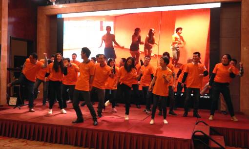 为了让所有人迅速融入团队,变革引导老师带领大家一起跳舞,相互熟悉,打破隔阂,融为一体。